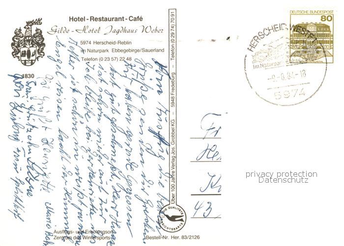 73542359 alte Postkarte Reblin Gilde Hotel Jagdhaus Weber postalisch gelaufen Erhaltung siehe scans [KathaD81] KatCode: 11110005962020