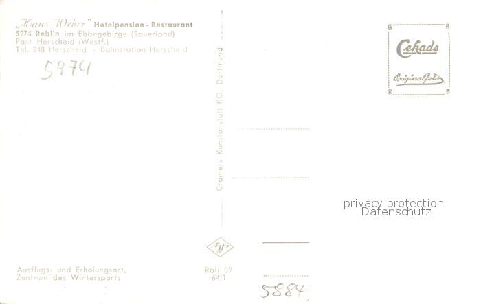 73710644 Reblin Haus Weber Hotel Restaurant Gastraeume postalisch nicht gelaufen Erhaltung siehe scans [WerneD78] KatCode: 11110005962020