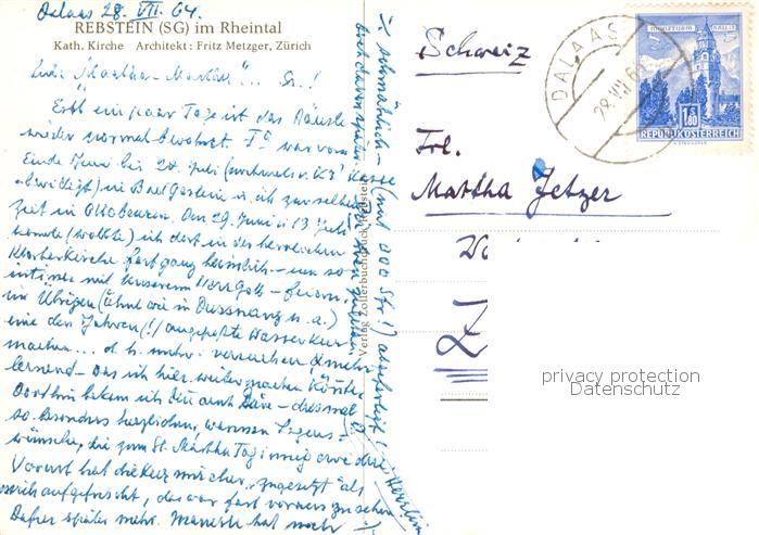 13867444 alte Postkarte Rebstein SG Kath Kirche Inneres postalisch gelaufen Erhaltung siehe scans [WerneD78] KatCode: 11470190555582