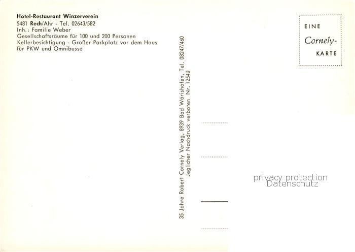 73846111 Rech Ahr Hotel Restaurant Winzerverein postalisch nicht gelaufen Erhaltung siehe scans [WerneD78] KatCode: 11110007131068