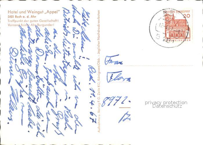 72021755 alte Postkarte Rech Ahr Hotel Weingut Appel postalisch gelaufen Erhaltung siehe scans KatCode: 11110007131068