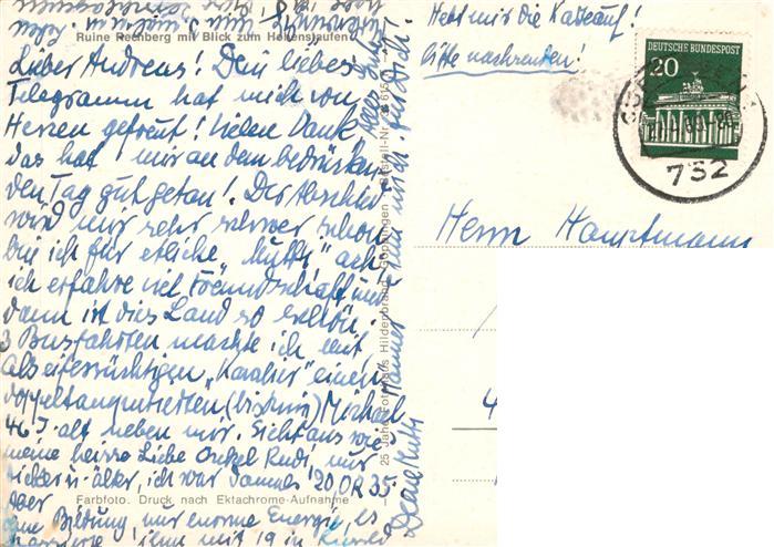73945900 Rechberg Ruine Schwaebisch Gmuend Ruine Rechberg mit Blick zum Hohenstaufen postalisch gelaufen Erhaltung siehe scans [FriedD77] alte Postkarte Frie Katcode 11110008136065