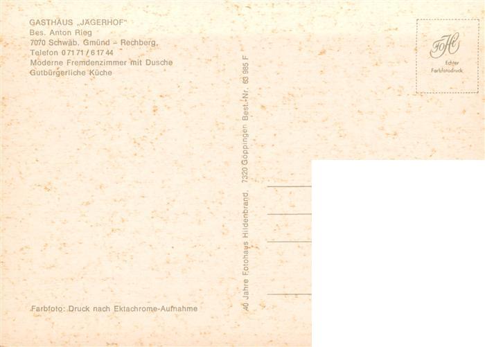 73896287 Rechberg Schwaebisch Gmuend Gasthaus Jaegerhof Gaststube Burg postalisch nicht gelaufen Erhaltung siehe scans [FriedD77] KatCode: 11110008136065