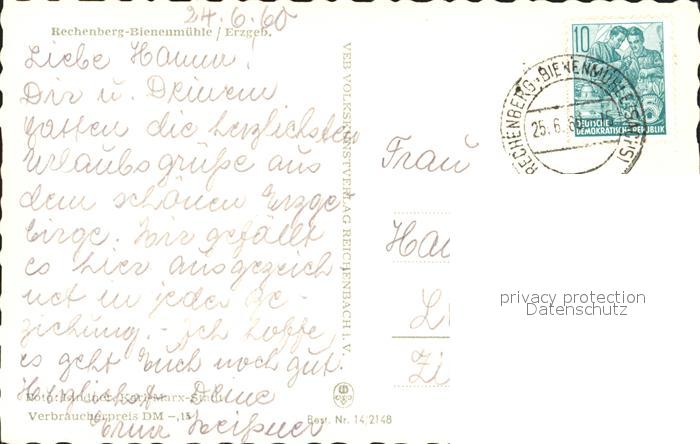 72010198 alte Postkarte Rechenberg-Bienenmuehle Osterzgebirge postalisch gelaufen Erhaltung siehe scans KatCode: 11110014177350