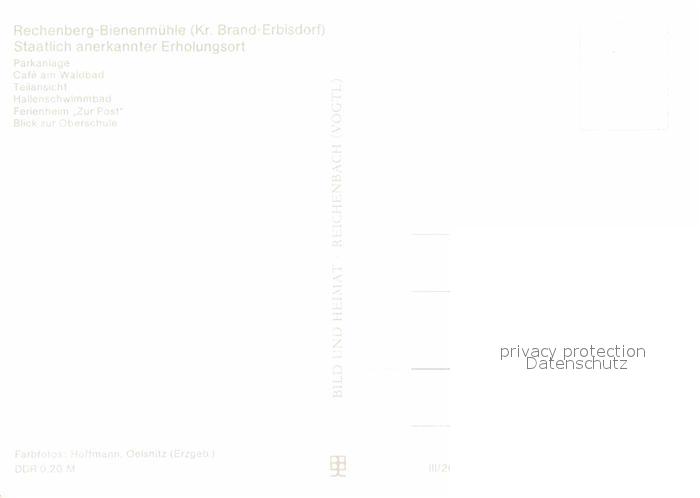 72743003 Rechenberg-Bienenmuehle Osterzgebirge Cafe am Waldbad Ferienheim-Zur-Post Hallenschwimmbad Oberschule postalisch nicht gelaufen Erhaltung siehe scans [LiesaD40] KatCode: 11110014177350