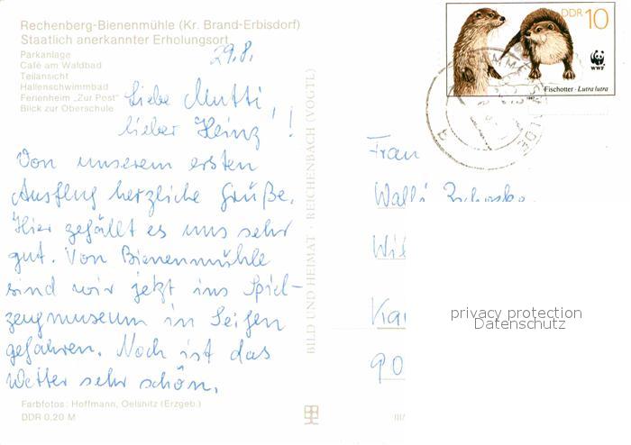 72655632 alte Postkarte Rechenberg-Bienenmuehle Osterzgebirge Parkanlage Cafe am Waldbad Ferienheim Zur Post postalisch gelaufen Erhaltung siehe scans [AndreD76] KatCode: 11110014177350