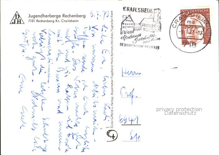 alte Postkarte Rechenberg Stimpfach Jugendherberge Fliegeraufnahme postalisch gelaufen Erhaltung siehe scans