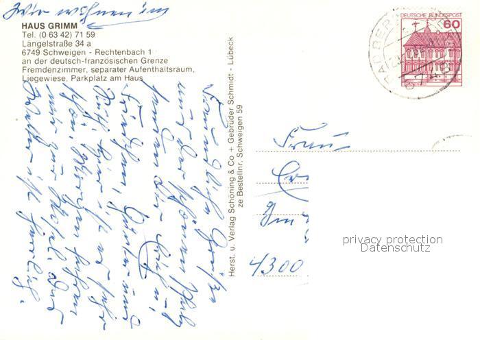 73204474 alte Postkarte Rechtenbach Schweigen-Rechtenbach Gaestehaus Pension Haus Grimm Landschaftspanorama postalisch gelaufen Erhaltung siehe scans [FriedD77] KatCode: 11110007337071