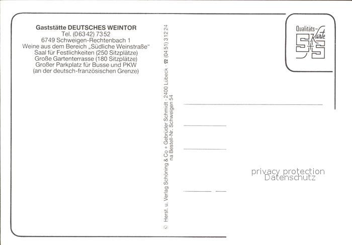 72447874 Rechtenbach Schweigen-Rechtenbach Restaurant Deutsches Weintor postalisch nicht gelaufen Erhaltung siehe scans KatCode: 11110007337071