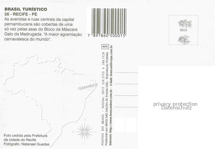 74095347 Recife Pernambuco Brazil Galo da Madrugada postalisch nicht gelaufen Erhaltung siehe scans [WerneD78] KatCode: 17040