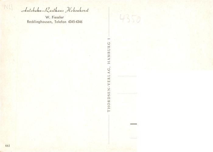 73891638 Recklinghausen Westfalen Autobahn Rasthaus Hohenhorst postalisch nicht gelaufen Erhaltung siehe scans [FriedD77] KatCode: 11110005562032