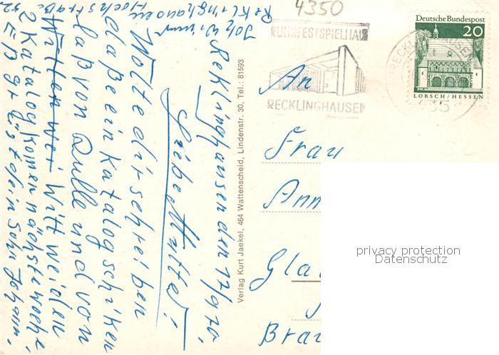 73860627 alte Postkarte Recklinghausen Westfalen Bochumer Strasse Suedbad Tennisplatz Neumarkt mit Hochhaus postalisch gelaufen Erhaltung siehe scans [FriedD77] KatCode: 11110005562032