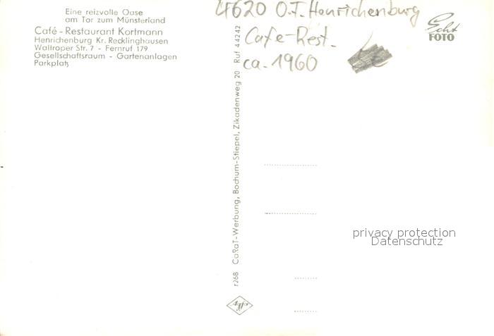 73755114 Recklinghausen Westfalen Cafe-Restaurant Kortmann Henrichenburg postalisch nicht gelaufen Erhaltung siehe scans [LiesaD40] KatCode: 11110005562032