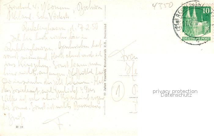 43342969 alte Postkarte Recklinghausen Westfalen Engelsburg am Herwegswall postalisch gelaufen Erhaltung siehe scans [WerneD78] KatCode: 11110005562032
