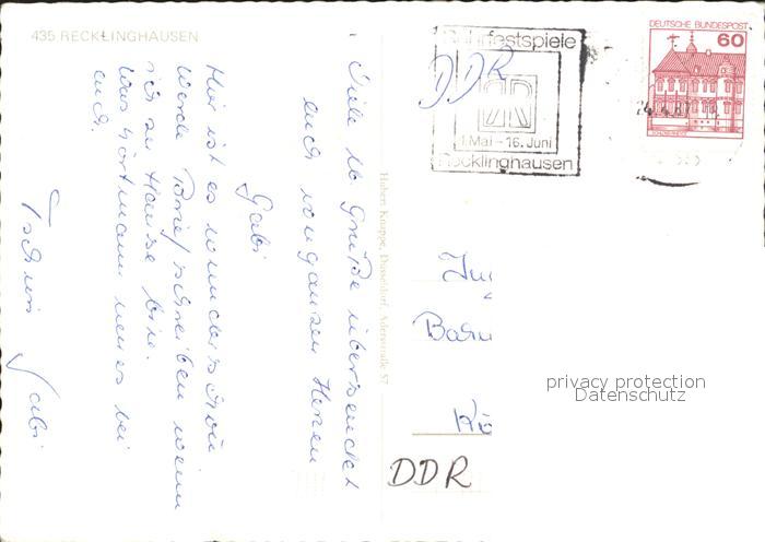 72257935 alte Postkarte Recklinghausen Westfalen Engelsburg Hauptbahnhof Marktplatz postalisch gelaufen Erhaltung siehe scans KatCode: 11110005562032