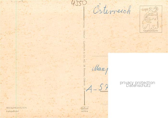 73870239 Recklinghausen Westfalen Europahotel postalisch nicht gelaufen Erhaltung siehe scans [WerneD78] KatCode: 11110005562032