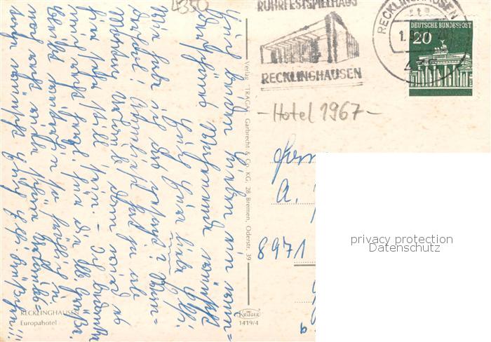 73868234 alte Postkarte Recklinghausen Westfalen Europahotel postalisch gelaufen Erhaltung siehe scans [FriedD77] KatCode: 11110005562032
