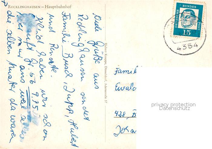 73815605 alte Postkarte Recklinghausen Westfalen Hauptbahnhof postalisch gelaufen Erhaltung siehe scans [FriedD77] KatCode: 11110005562032