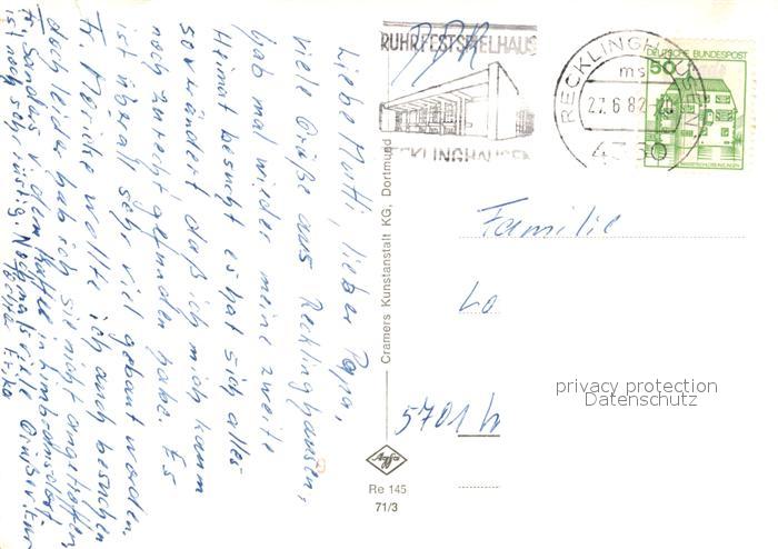 73094827 alte Postkarte Recklinghausen Westfalen Hauptbahnhof Rathaus Petruskirche Haus Ruhrfestspiele Engelsburg postalisch gelaufen Erhaltung siehe scans [KathaD81] KatCode: 11110005562032