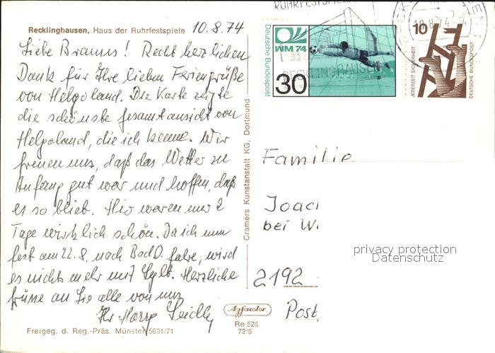 72567696 alte Postkarte Recklinghausen Westfalen Haus Ruhrfestspiele postalisch gelaufen Erhaltung siehe scans [KathaD79] KatCode: 11110005562032