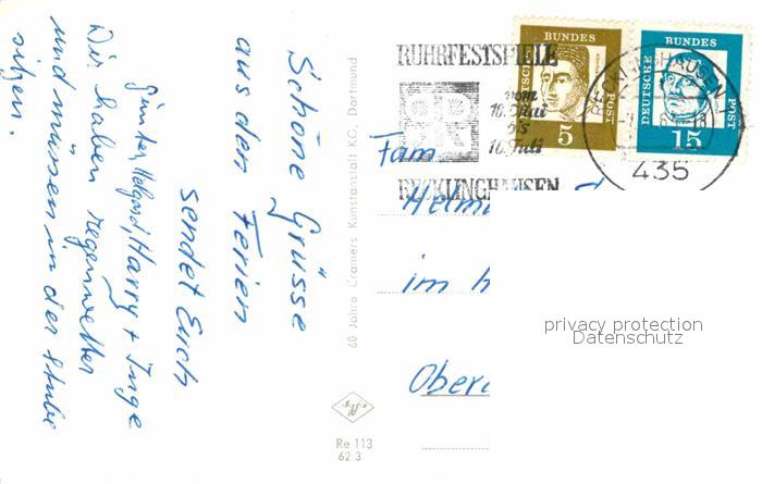 72748019 alte Postkarte Recklinghausen Westfalen Markt Rathaus Stadthaus Petruskirche Engelsburg Stadtgarten postalisch gelaufen Erhaltung siehe scans [FriedD77] KatCode: 11110005562032