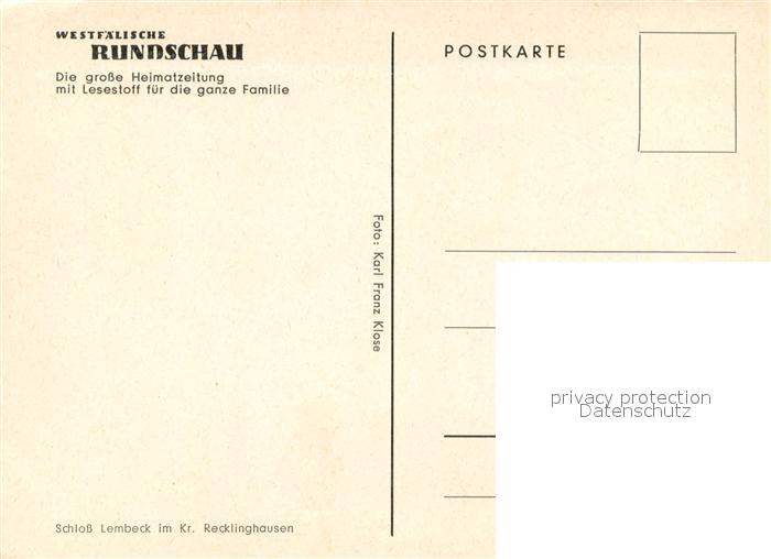 73739413 Recklinghausen Westfalen Schloss Lembeck postalisch nicht gelaufen Erhaltung siehe scans [FriedD77] KatCode: 11110005562032