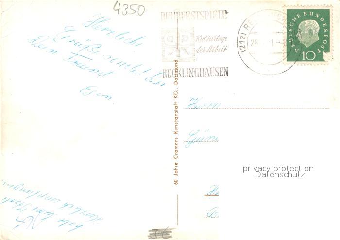 73701476 Recklinghausen Westfalen Totalansicht Rathaus Engelsburg Hallenbad Propsteikirche St.Peter Saalbau Stadtgarten postalisch nicht gelaufen Erhaltung siehe scans [LiesaD40] KatCode: 11110005562032