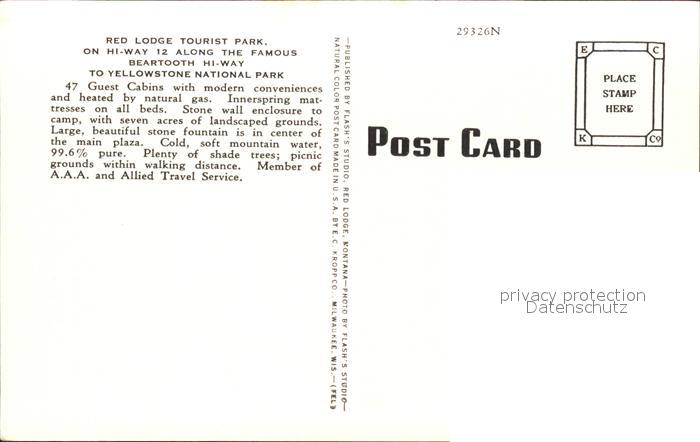 11688532 Red Lodge United States Tourist Park Highway 12 Beartooth Highway near Yellowstone National Park Kutsche postalisch nicht gelaufen Erhaltung siehe scans KatCode: 14140280000000