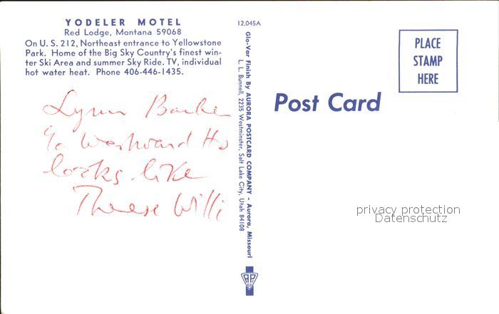 11688357 Red Lodge United States Yodeler Motel postalisch nicht gelaufen Erhaltung siehe scans KatCode: 14140280000000