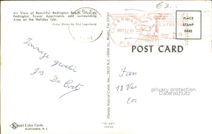 72232130 old postcard Redington Beach Florida Fliegeraufnahme postalisch gelaufen Erhaltung siehe scans KatCode: 14140110000000