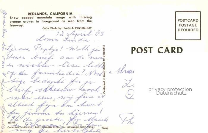 72908206 Redlands United States postalisch nicht gelaufen Erhaltung siehe scans [LiesaD40] KatCode: 14140050000000