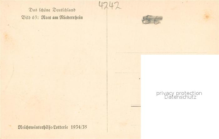 73692571 Rees Rhein Serie Das schoene Deutschland Bild 63 Reichswinterhilfe Lotterie 1934/35 postalisch nicht gelaufen Erhaltung siehe scans [FriedD77] KatCode: 11110005154044