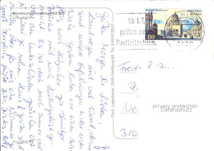 71909611 alte Postkarte Reetze Wendischer Rundling Fliegeraufnahme postalisch gelaufen Erhaltung siehe scans KatCode: 11110003354018