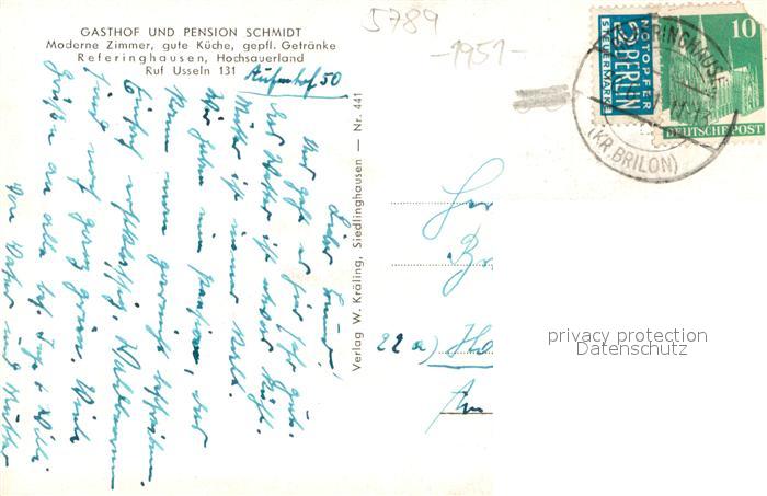 73705812 alte Postkarte Referinghausen Gasthof Pension Schmidt Panorama postalisch gelaufen Erhaltung siehe scans [WerneD78] KatCode: 11110005958028