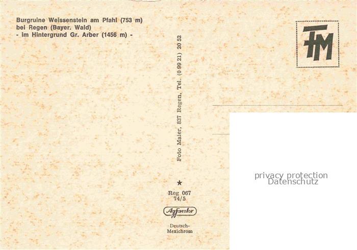 74044767 Regen Bayern Burgruine Weissenstein am Pfahl Fliegeraufnahme postalisch nicht gelaufen Erhaltung siehe scans [WerneD78] KatCode: 11110009276138