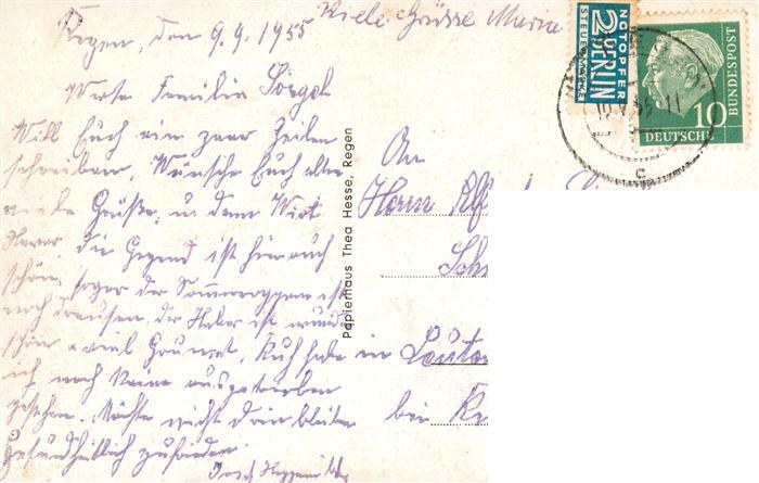 73899585 alte Postkarte Regen Bayern Stadtplatz postalisch gelaufen Erhaltung siehe scans [FriedD77] KatCode: 11110009276138