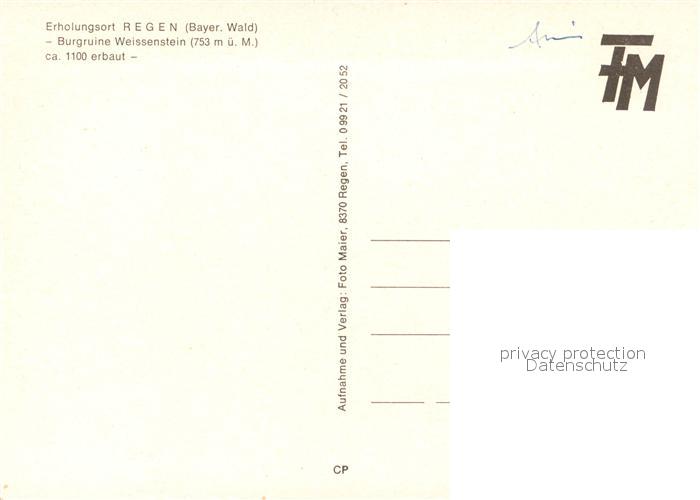 73251854 Regen Burgruine Weissenstein postalisch nicht gelaufen Erhaltung siehe scans [KathaD81] KatCode: 11110009276138