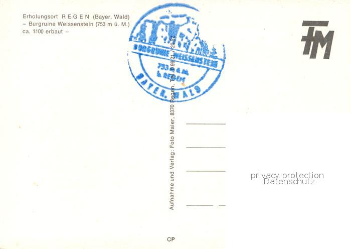 73251564 Regen Burgruine Weissenstein postalisch nicht gelaufen Erhaltung siehe scans [KathaD81] KatCode: 11110009276138
