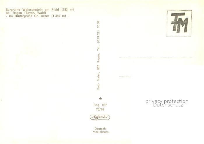 73618314 Regen Burgruine Weissenstein am Pfahl Blick zum Grosser Arber Fliegeraufnahme postalisch nicht gelaufen Erhaltung siehe scans [FriedD77] KatCode: 11110009276138