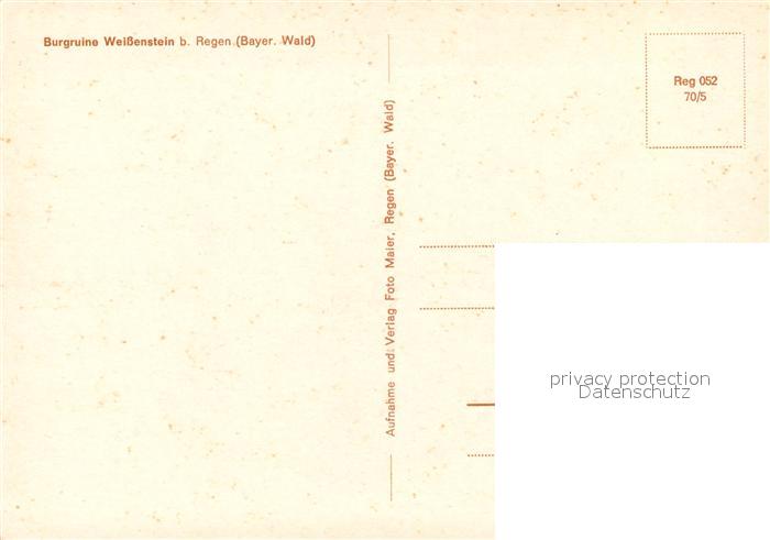 73251850 Regen Burgruine Weissenstein Kapelle postalisch nicht gelaufen Erhaltung siehe scans [KathaD81] KatCode: 11110009276138