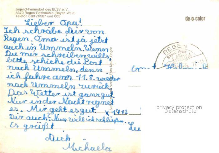 72841600 alte Postkarte Regen Fliegeraufnahme Feriendorf des BLSV Raithmuehle postalisch gelaufen Erhaltung siehe scans [LiesaD40] KatCode: 11110009276138