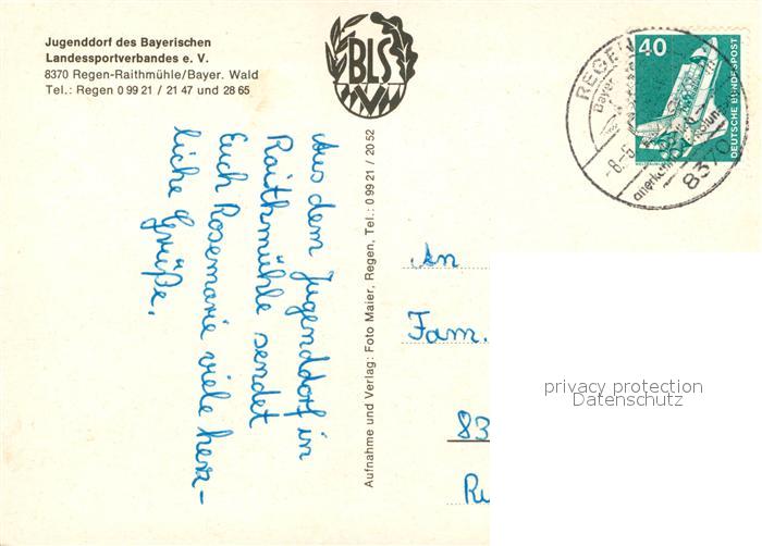 73170710 alte Postkarte Regen Jugenddorf BLSV Raithmuehle postalisch gelaufen Erhaltung siehe scans [KathaD81] KatCode: 11110009276138