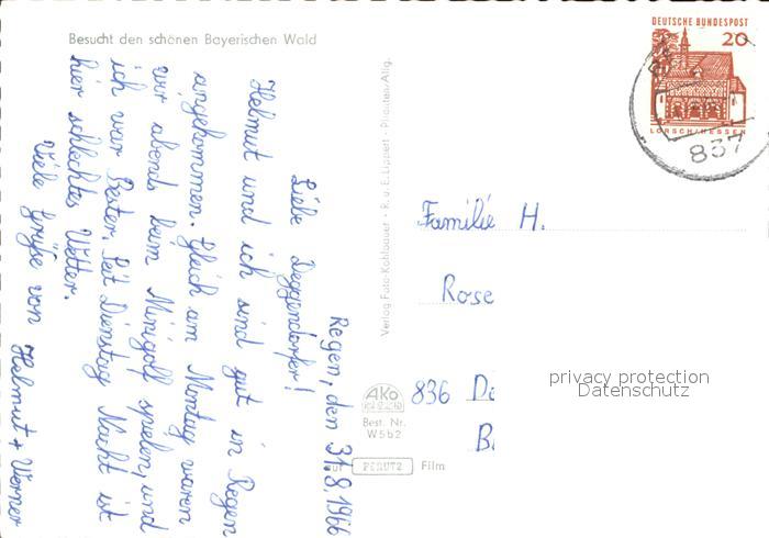 72461771 alte Postkarte Regen Ortsansicht mit Kirche Marktplatz Burgruine Arber Arbersee Bayerischer Wald postalisch gelaufen Erhaltung siehe scans KatCode: 11110009276138