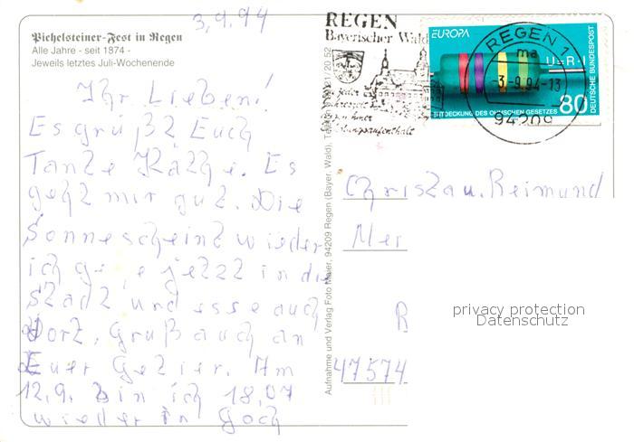 73101495 alte Postkarte Regen Pichelsteiner Fest Teilansichten postalisch gelaufen Erhaltung siehe scans [WerneD78] KatCode: 11110009276138