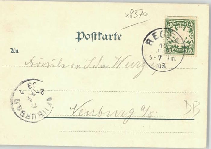 40219553 Regen [Stempelabschlag] Waldhaus x 1903 KatCode 11110009276138