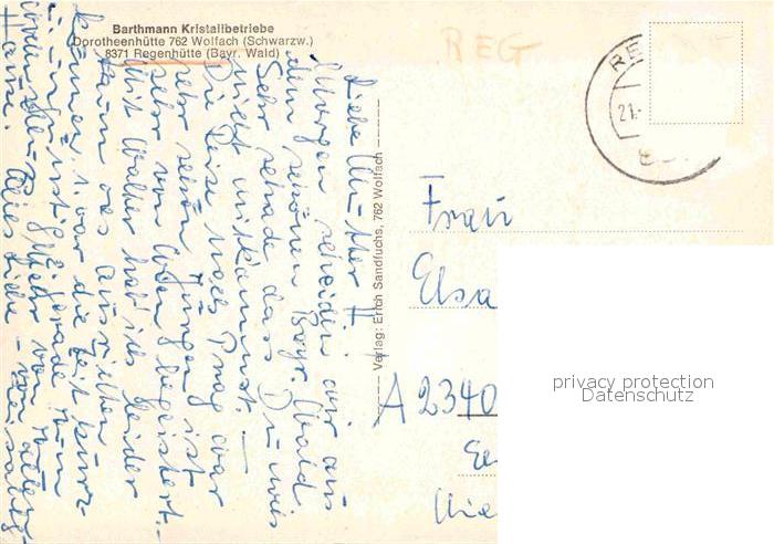 72831568 alte Postkarte Regenhuette Bayerisch Eisenstein Barthmann Kristallbetriebe Dorotheenhuette postalisch gelaufen Erhaltung siehe scans [KathaD81] KatCode: 11110009276115