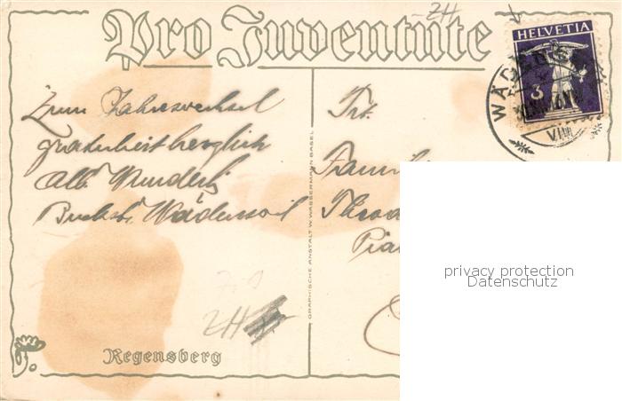 13770299 alte Postkarte Regensberg Dielsdorf ZH Marie Stiefel Kuenstlerkarte postalisch gelaufen Erhaltung siehe scans [FriedD77] KatCode: 11470260875222