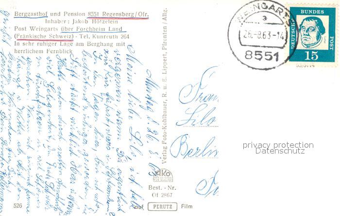 43346268 alte Postkarte Regensberg Kunreuth Berggasthof Hoetzelein postalisch gelaufen Erhaltung siehe scans [KathaD81] KatCode: 11110009474145