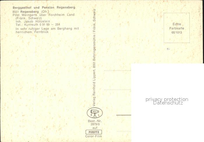 72426116 Regensberg Kunreuth Berggasthof Pension Regensberg postalisch nicht gelaufen Erhaltung siehe scans KatCode: 11110009474145