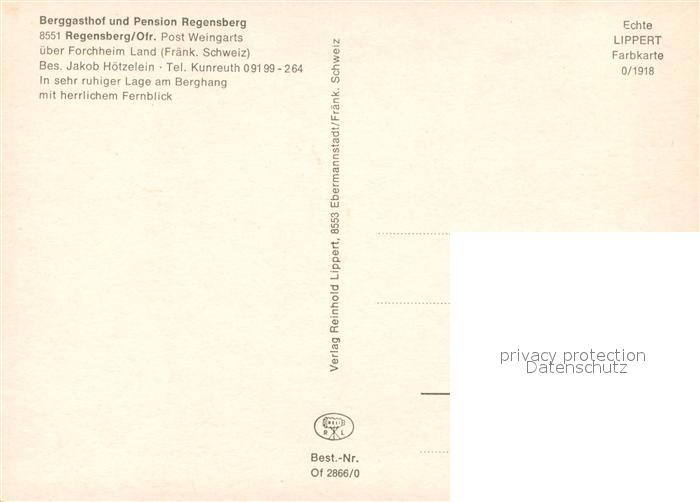 73584710 Regensberg Kunreuth Berggasthof Pension Regensberg postalisch nicht gelaufen Erhaltung siehe scans [LiesaD40] KatCode: 11110009474145